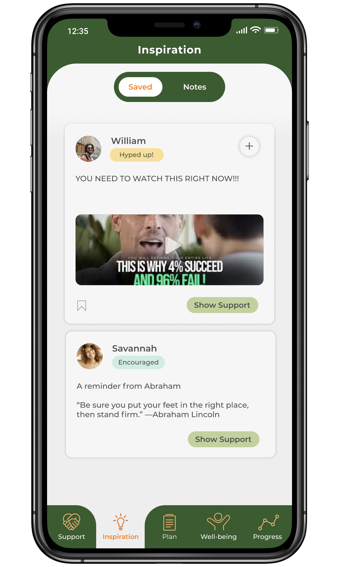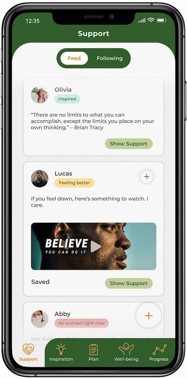 My design solution was approved by my participants and three new testers. They were able to use my interactive prototype and had shown great enthusiasm for Plan Well app. My participants and new testers have quite similar goals and had shown different ways of using the prototype. They loved how different tasks are categorized and the purpose of the app. Some loved the support section as they liked the idea of being able to express themselves in a helpful community. Most of them were curious about how much impact they could get from using the inspiration section. The Well-being tab excites them as they read the activities and challenges that they would like to try. Lastly, being able to track the progress motivated them to use the Plan Well app.